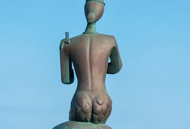 Iconic bronze mermaid sculpture at the fishing harbor – quick photo stop with marina views
